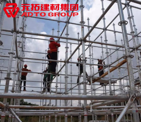 盤扣腳手架做到拆裝極簡便,一個人只需要一把錘就能做到安裝和拆卸的全部過程。施工效率大大提升提高,兩個施工工人僅需1天便能完成350m3的施工現(xiàn)場。