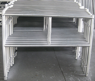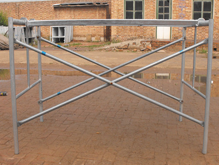 門式腳手架的搭設(shè),應(yīng)先在端點(diǎn)底座上插入兩榀門架,并隨即裝上交叉桿固定,鎖好鎖片,然后搭設(shè)以后的門架,每搭一榀,隨即裝上交叉桿和鎖片。